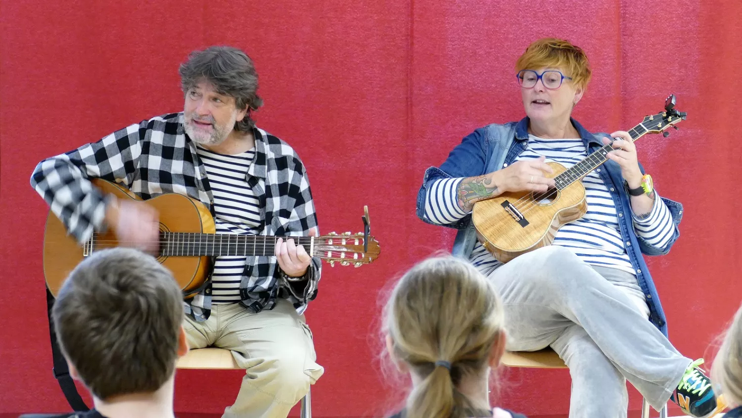 Diese Liedzeilen waren in den vergangenen drei Wochen häufig in der Bönninghardt-Schule zu hören. Enthusiastisch sangen und gebärdeten die Schüler*innen die Songs mit den beiden Schauspielern Simone Heiser und Stephan Tillmanns.